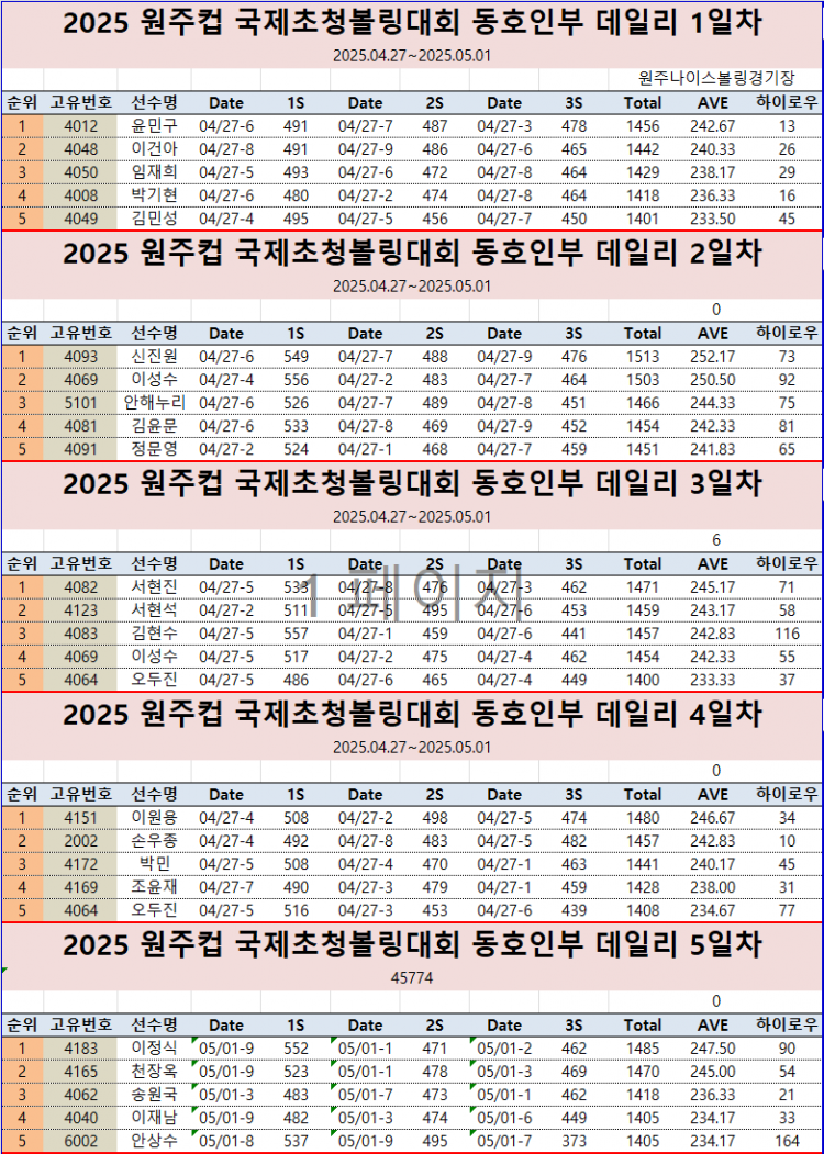 2025 원주컵 국제오픈 초청 볼링대회 동호인부 데일리 성적(1일차 ~ 5일차) 페이지 정보 작성자 한국프로볼링 작성일 25-04-30 09:08 조회 3,892회 댓글 0건 본문 1~5일차 추천0 이전글2025 원주컵 국제오픈 초청 볼링대회 오픈부 데일리 성적(1일차 ~ 5일차) 다음글2025 원주컵 국제오픈 초청 볼링대회 오픈부 예선 5일차 성적 목록 댓글목록 0 댓글목록 등록된 댓글이 없습니다.