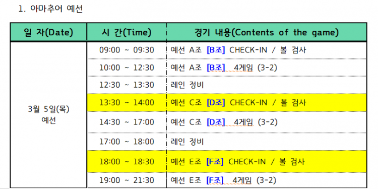 [변경 안내] 2026 퍼펙트코리아컵 프로볼링대회 아마추어 예선 타임 테이블 변경 안내 페이지 정보 작성자 한국프로볼링 작성일 26-03-04 13:08 조회 2,308회 댓글 0건 본문 원활한 경기 진행을 위해 아마추어 예선 C/D조, E/F조 체크인 시간이 변경 되었습니다.C/D조 E/F조 선수분들께서는 원활한 경기 진행과 주차를 위해 체크인 시간을 지켜서 도착해 주시기 바랍니다. 추천0 이전글[조배정] 2026 퍼펙트코리아컵 프로볼링대회 본선 조배정 다음글[조배정] 2026 퍼펙트코리아컵 프로볼링대회 예선전 조배정 목록 댓글목록 0 댓글목록 등록된 댓글이 없습니다.