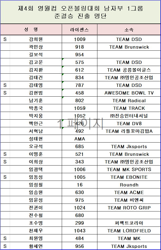 [명단] 제4회 영월컵 오픈볼링대회 남자부 준결승 진출 명단 페이지 정보 작성자 한국프로볼링 작성일 25-10-15 22:59 조회 3,442회 댓글 0건 본문 추천0 이전글[대회공지] 제10회 상주 곶감컵 오픈볼링대회[수정 : 11.12 남자부 준결승 체크인 시간변경] 다음글[예선접수] 2025 브런스윅컵 프로볼링대회 예선접수 링크공지 목록 댓글목록 0 댓글목록 등록된 댓글이 없습니다.