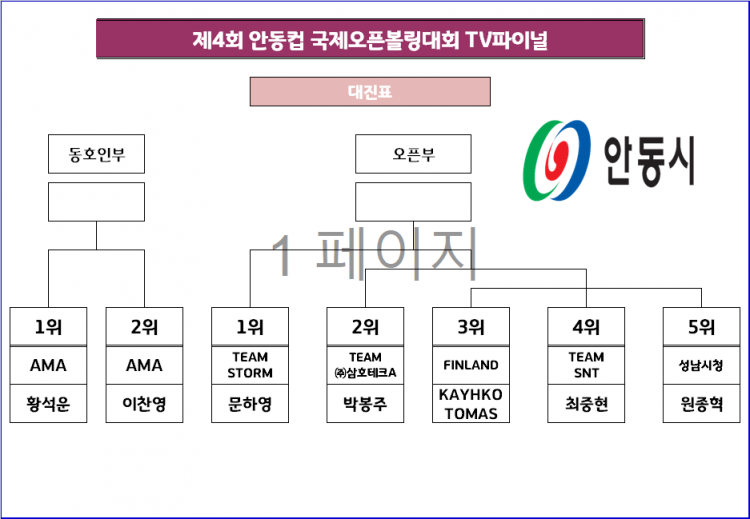 [대진표] 제4회 안동컵 국제오픈볼링대회 TV파이널 대진표 페이지 정보 작성자 한국프로볼링 작성일 25-08-25 20:45 조회 2,574회 댓글 0건 본문 제4회 안동컵 국제오픈볼링대회 TV파이널 대진표 추천0 이전글[조배정] 2025 동트는 동해컵 프로볼링대회 조배정 원본 다음글[명단] 제4회 안동컵 국제오픈볼링대회 오픈부 준결승 진출명단 목록 댓글목록 0 댓글목록 등록된 댓글이 없습니다.
