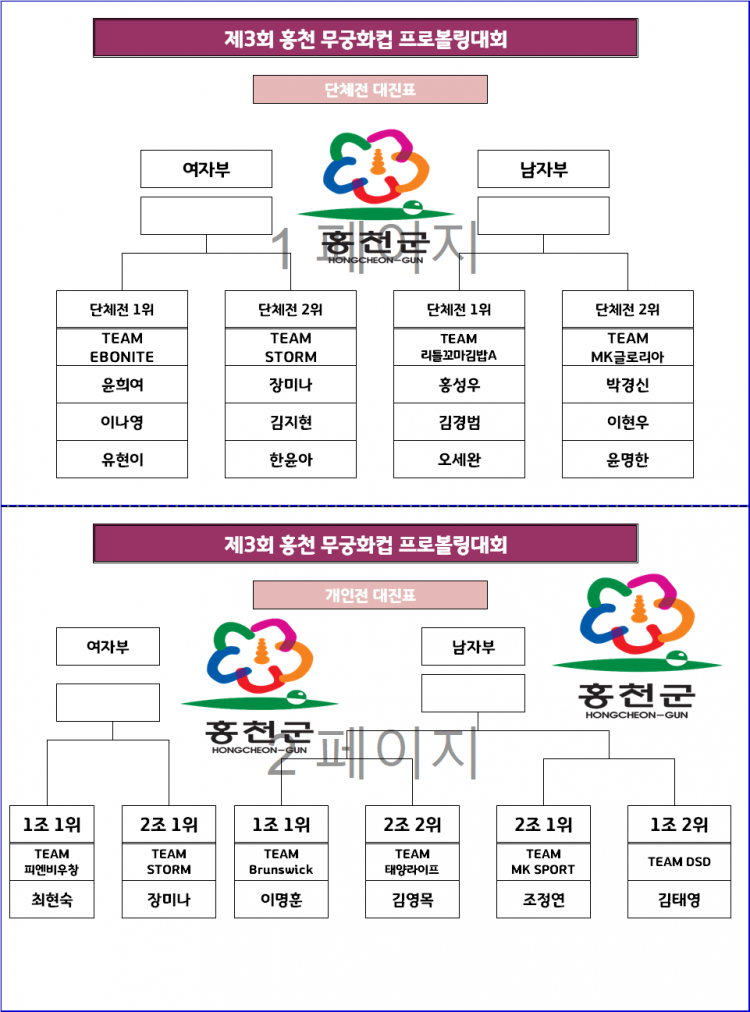 [대진표] 제3회 홍천 무궁화컵 프로볼링대회 TV파이널 대진표 페이지 정보 작성자 한국프로볼링 작성일 25-07-20 17:09 조회 3,752회 댓글 0건 본문 -개인전- 추천0 이전글제4회 안동컵 국제오픈 볼링대회 예선 접수 링크 공지 다음글[명단] 제3회 홍천무궁화컵 프로볼링대회 남자부 준결승 진출 명단(1그룹 / 2그룹) 목록 댓글목록 0 댓글목록 등록된 댓글이 없습니다.
